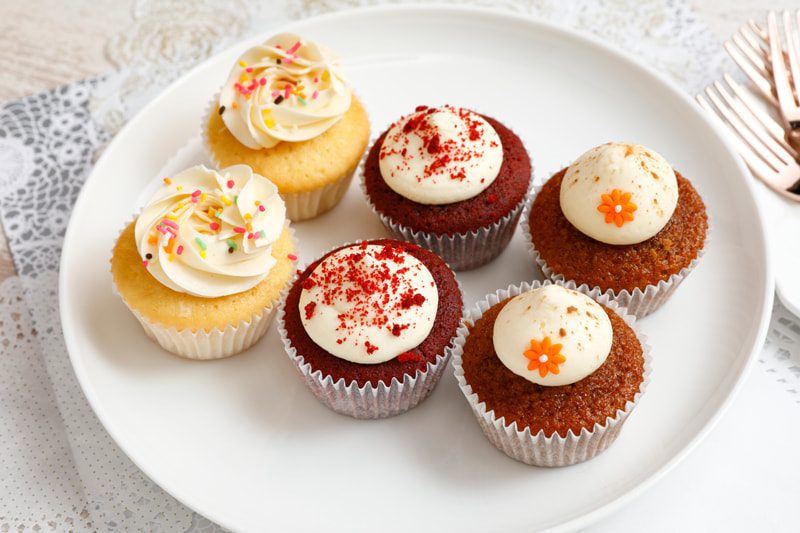 お気に入りのカップケーキを6個セットで。オプションで誕生日・記念日でも利用できるディスクを追加できます。